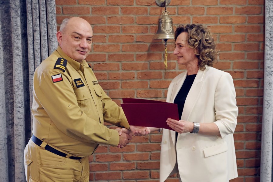Z okazji jubileuszu serdeczne gratulacje oraz wyrazy uznania przekazał Komendant Centralnej Szkoły PSP w Częstochowie, st. bryg. Jarosław Jankowski, który dokonał wręczenia okolicznościowego dokumentu. W uroczystości uczestniczyła również Naczelnik Wydziału Kadr, mł. bryg. Magdalena Kołbasiuk.