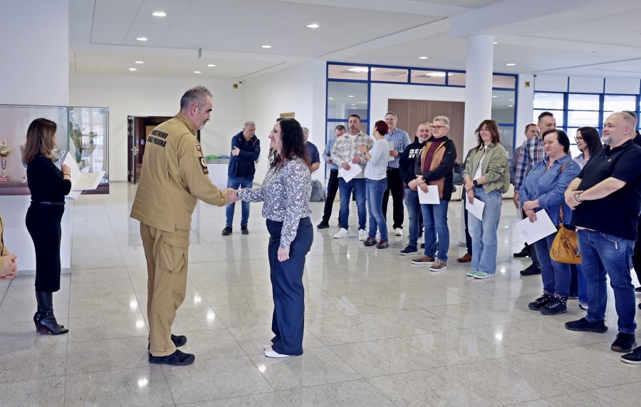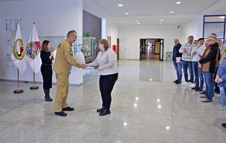 Zaświadczenia przedłużające uprawnienia inspektora ochrony przeciwpożarowej wręczył Zastępca Komendanta Centralnej Szkoły Państwowej Straży Pożarnej st. bryg. Piotr Woś w obecności Naczelnika Wydziału Szkoleń Specjalistycznych i Współpracy Międzynarodowej - st. bryg. Bogumiła Zalewskiego.