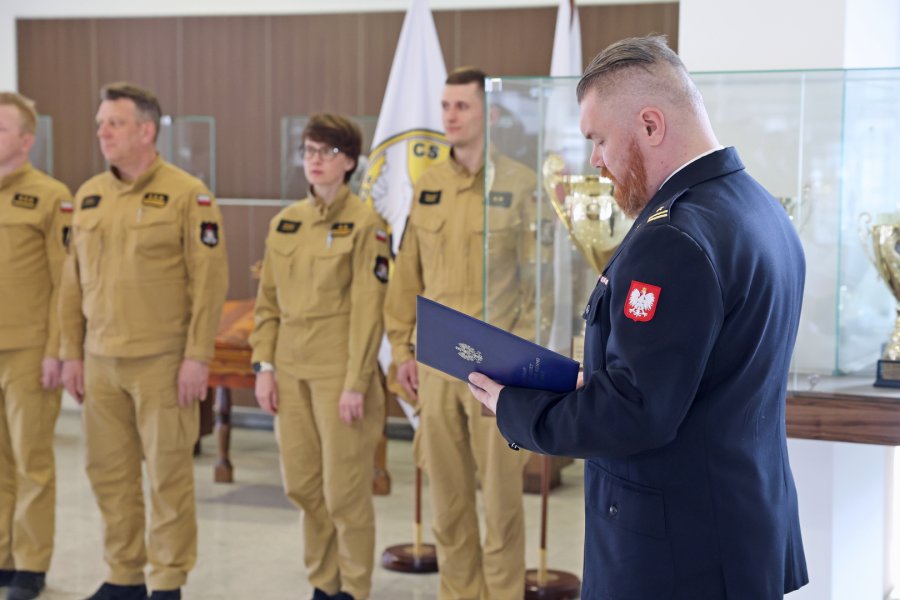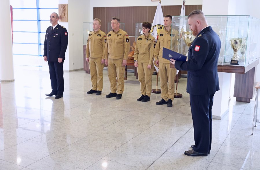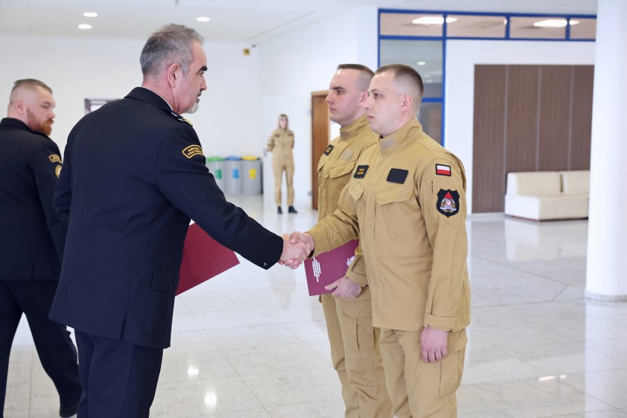 Szkolenie zakończyło się wręczeniem zaświadczeń przez st. bryg. Piotra Wosia Zastępcę Komendanta Centralnej Szkoły Państwowej Straży Pożarnej w Częstochowie w obecności kadry CS PSP.