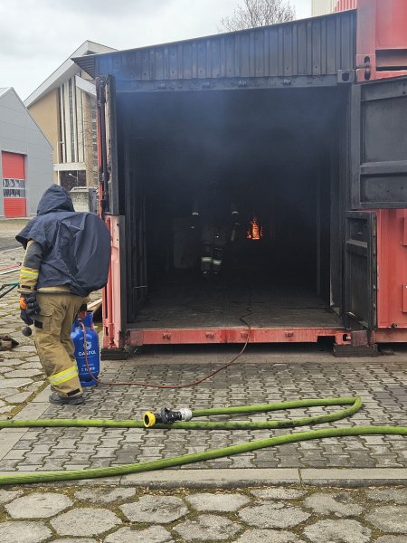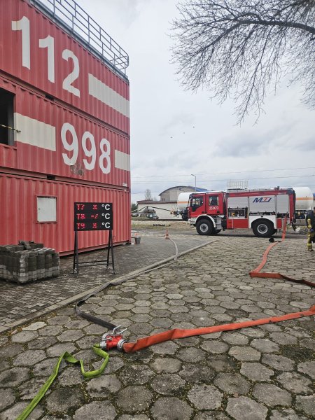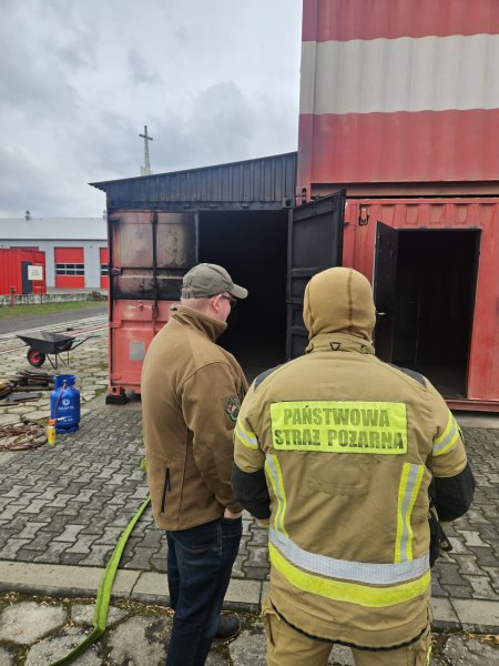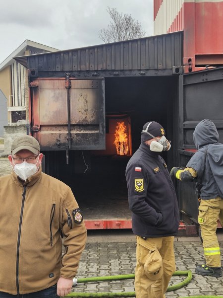 Przyjrzał się również warsztatom pożarów wewnętrznych, poznając praktyczną stronę szkolenia strażaków.