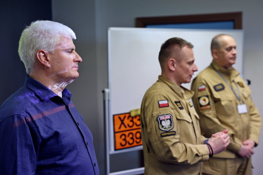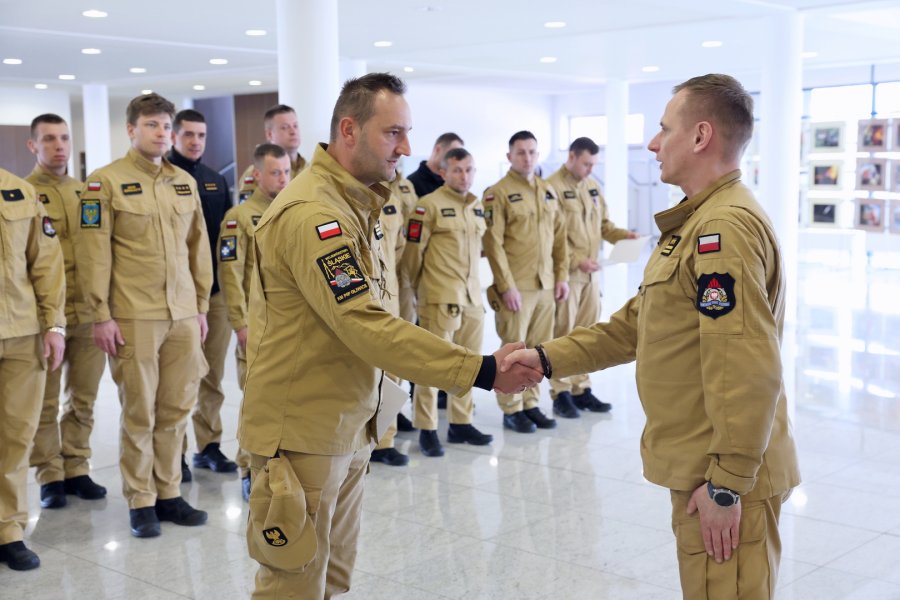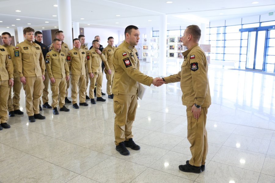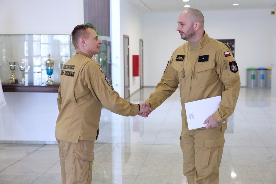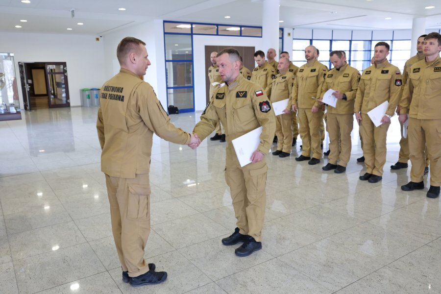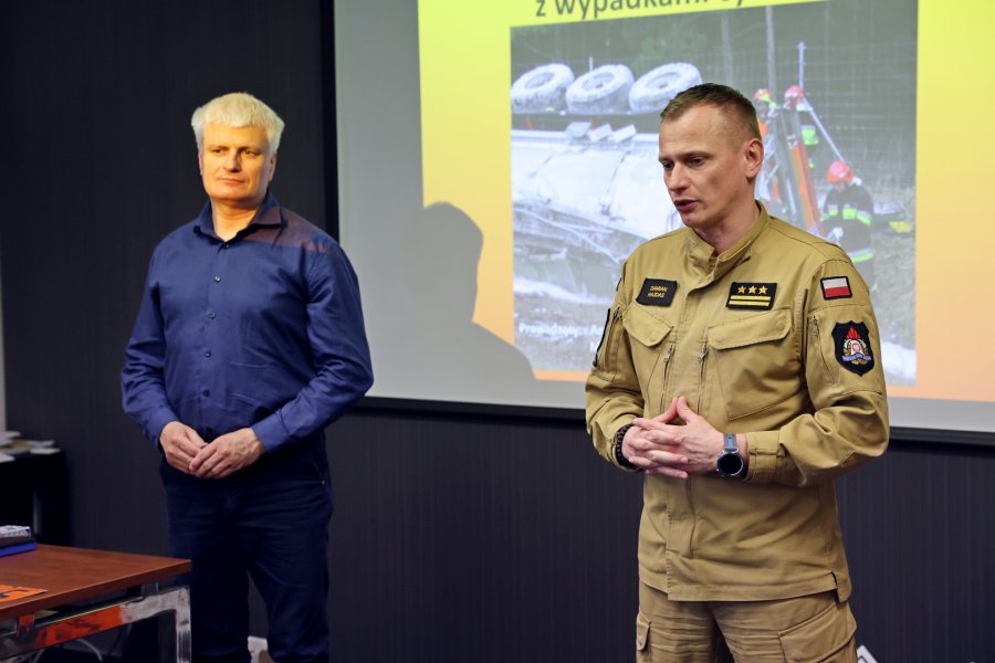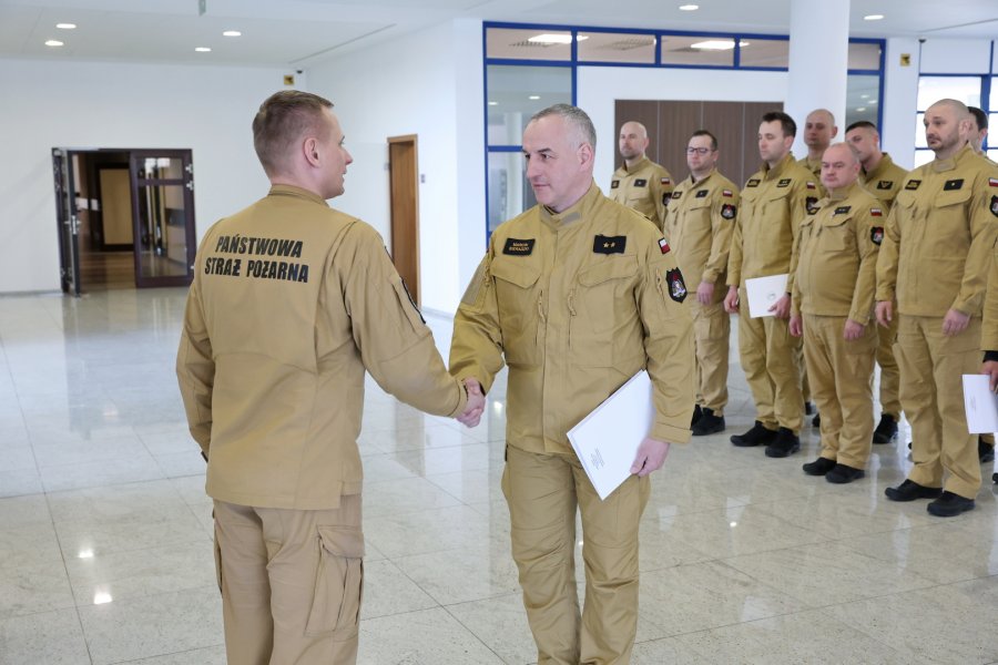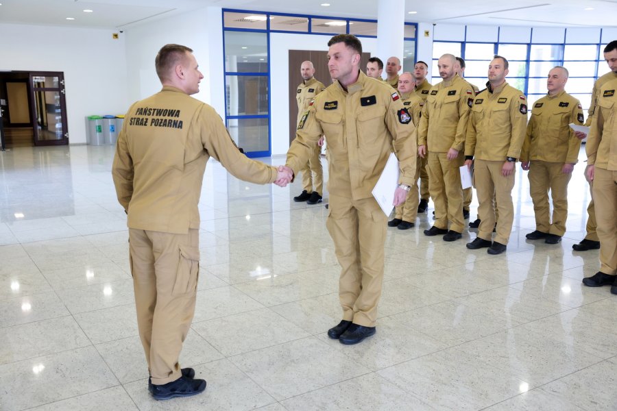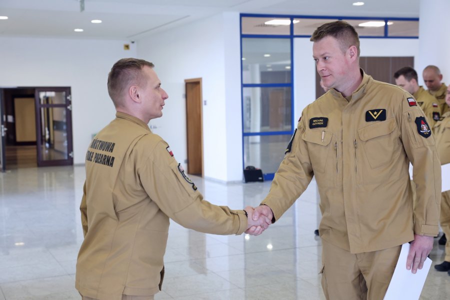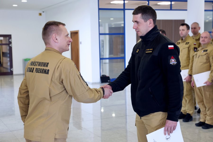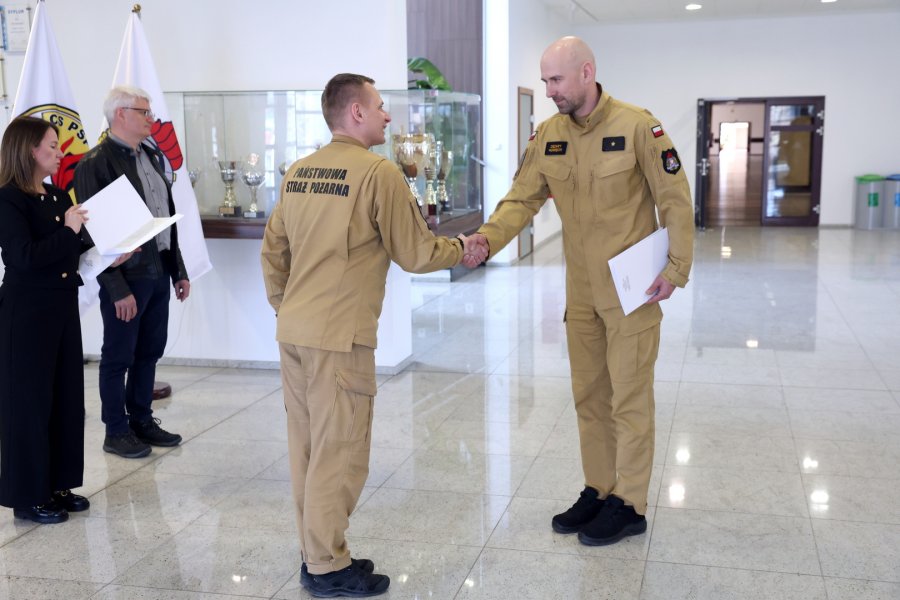 Zaświadczenia potwierdzające ukończenie przedmiotowego szkolenia uczestnikom wręczył Zastępca Komendanta Centralnej Szkoły PSP st. bryg. dr. Damian Hajdas w obecności Naczelnika Wydziału Szkoleń Specjalistycznych i Współpracy Międzynarodowej st. bryg. Bogumiła Zalewskiego oraz Wykładowcy Andrzeja Strzelca.